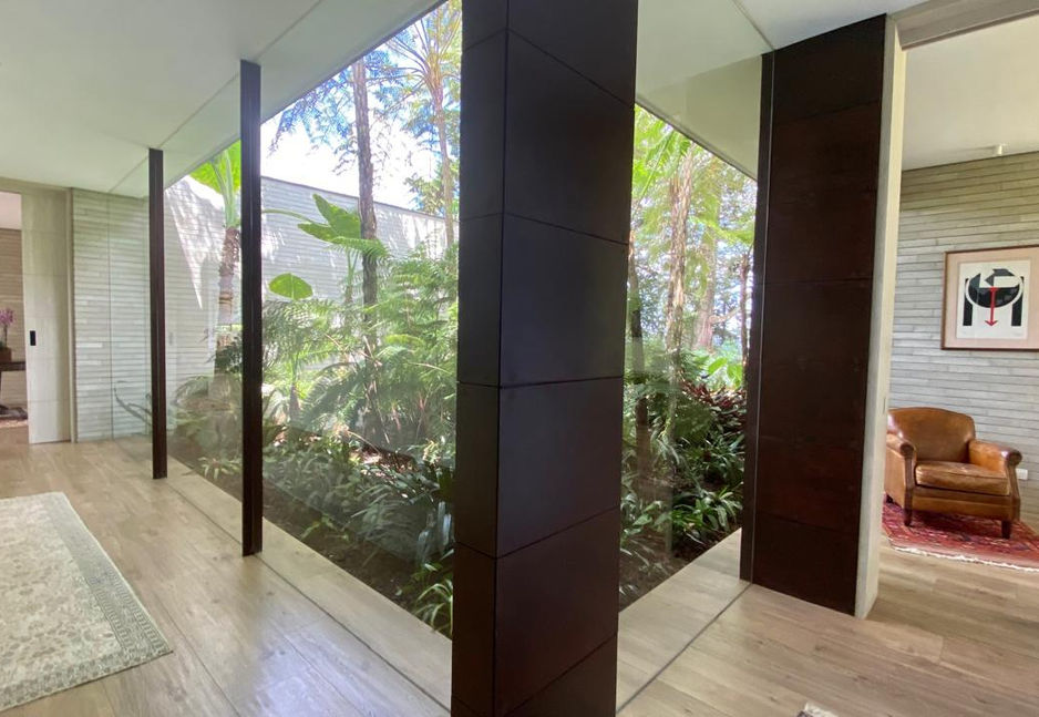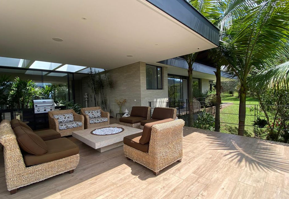House in a gated community near the Túnel de Oriente. Surrounded by native trees, fruit trees, gardens, and a beautiful view. Designed by architect Mauricio Zapata.