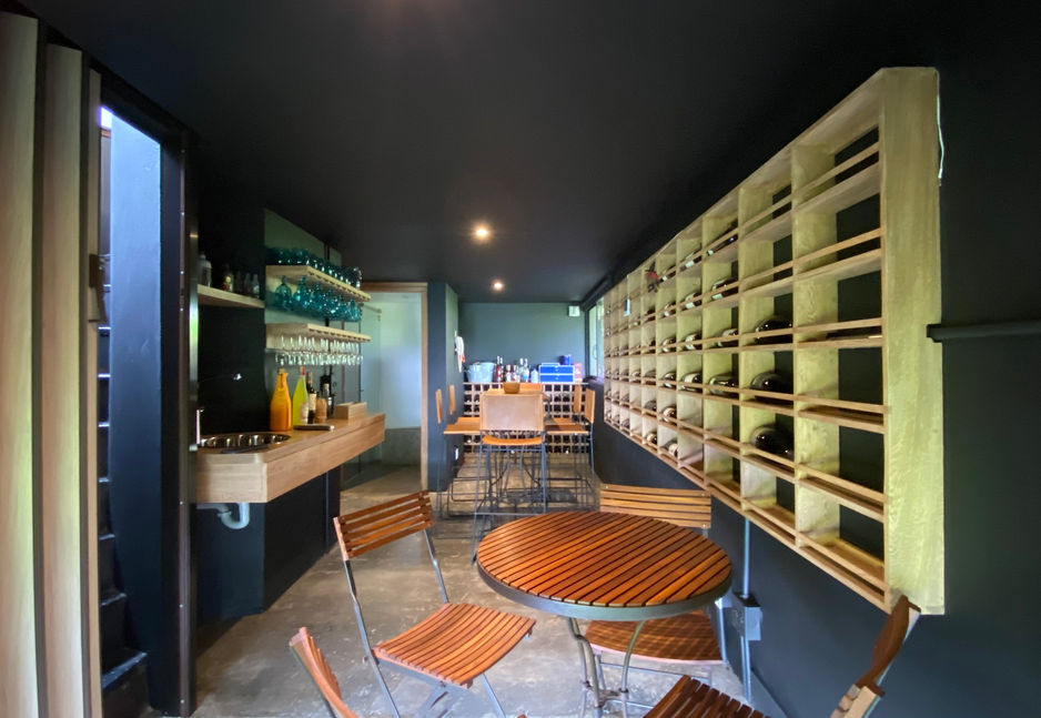 cocina cerrada, biblioteca, baño social, cava de vinos.