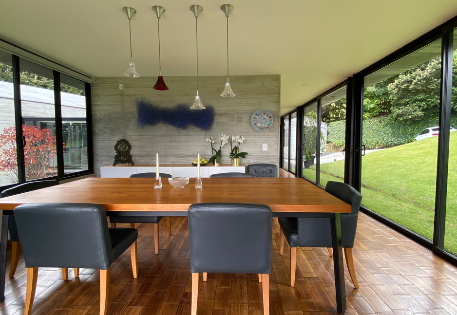 Piso en madera natural (bambú), vidrios térmicos, aislante de corcho en el techo.
