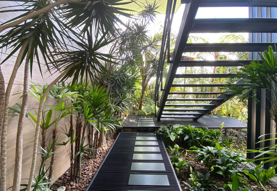 Casa en parcelación cerrada cerca al Túnel de Oriente. Rodeada de árboles nativos, frutales, jardines y con una vista hermosa. Diseño del arquitecto Mauricio Zapata.